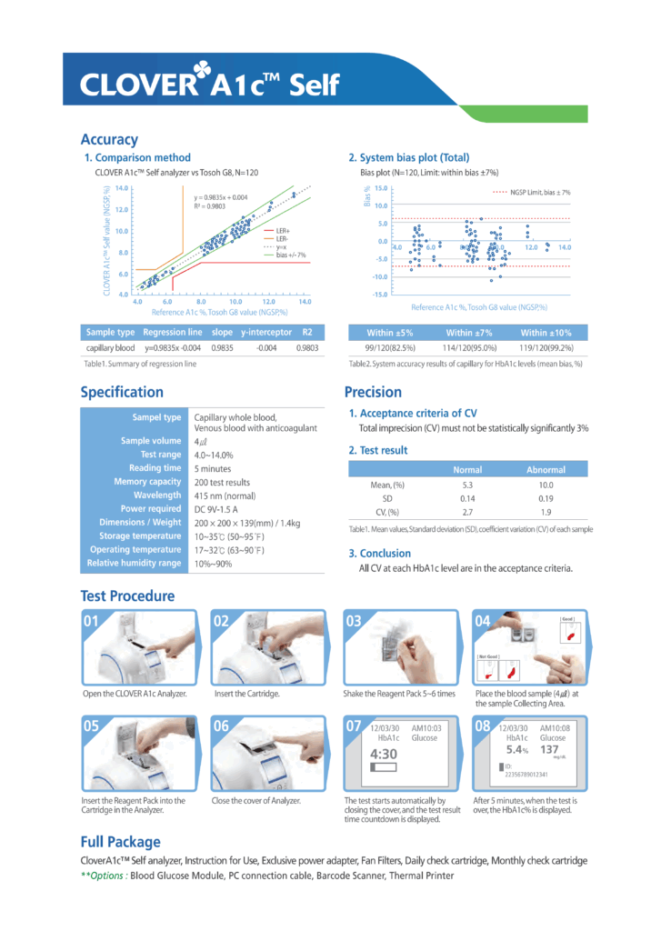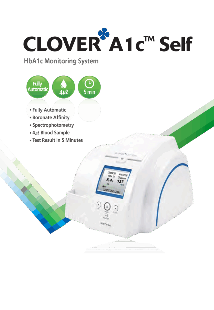 • Reliable for clinical care: The Clover A1c system supports monitoring of long‑term glycemic control, helping reduce the risk of diabetes‑related complications and aiding in therapeutic decision‑making. Infopia